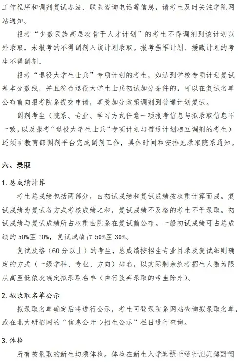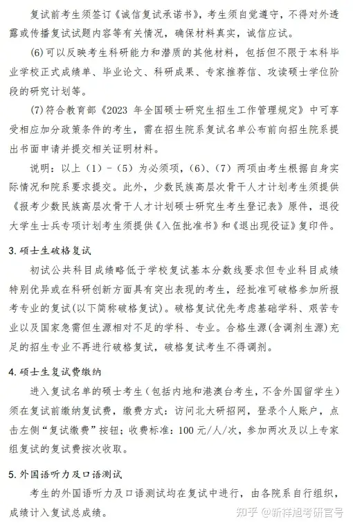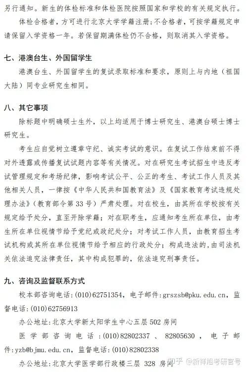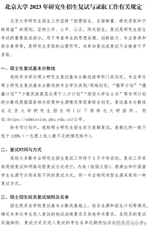 新祥旭北研堂: 北京大学 2023 年研究生招生复试与录取工作有关规定