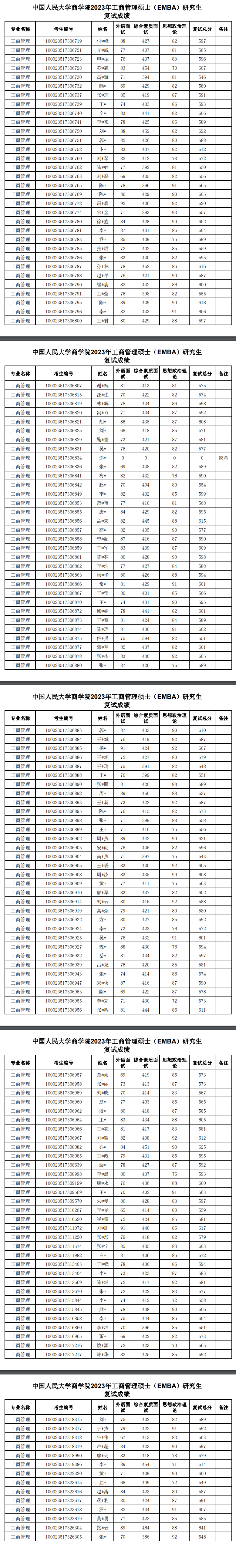 新祥旭考研:中国人民大学商学院2023年工商管理硕士(EMBA)研究生复试成绩