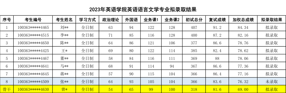 五、英语语言文学专业2023年考研进入复试的初试成绩基本要求