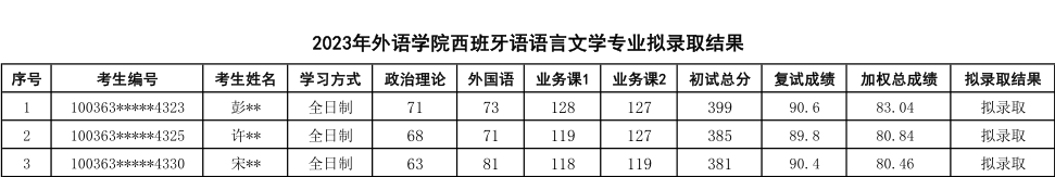 六、西班牙语语言文学专业2023年考研拟录取结果