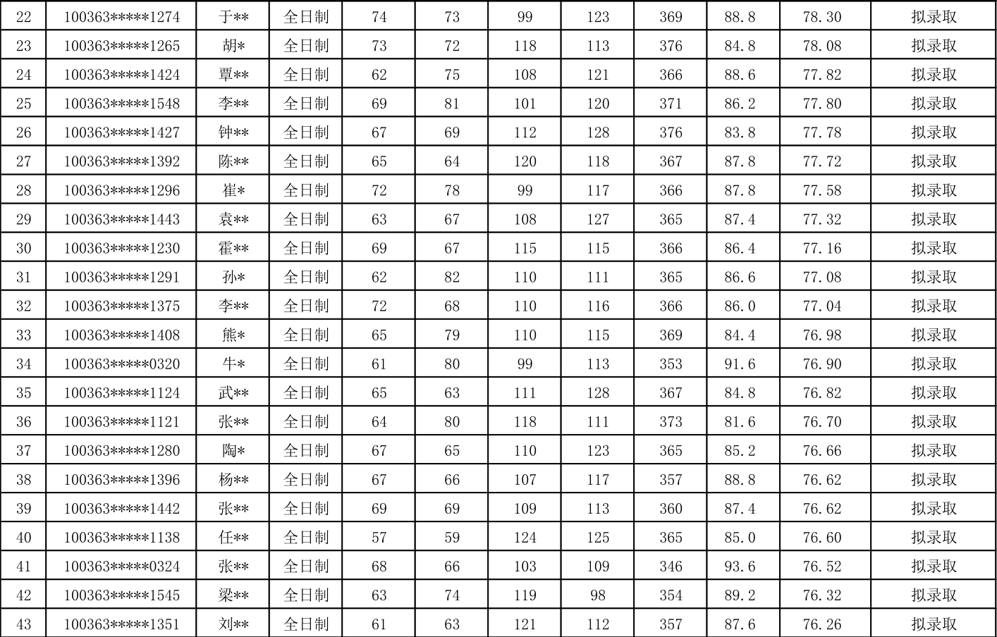 2)对复试合格考生进行差额录取。计算总成绩时,初试成绩、复试成绩均要转化为百分制,即初试成绩满分为500分的,要除以50转化为百分制,300分的要除以3转化为百分制,复试成绩同理处理。初试、复试的成绩(转化为百分制)原则上按7:3的比例加权相加,得出总成绩,并排出名次,根据招生计划差额录取。举例:如一个考生初试成绩为380分(满分500分),复试成绩为85分(满分100分),则最后的加权总成绩为380÷5×70%+85×30%=78.7。