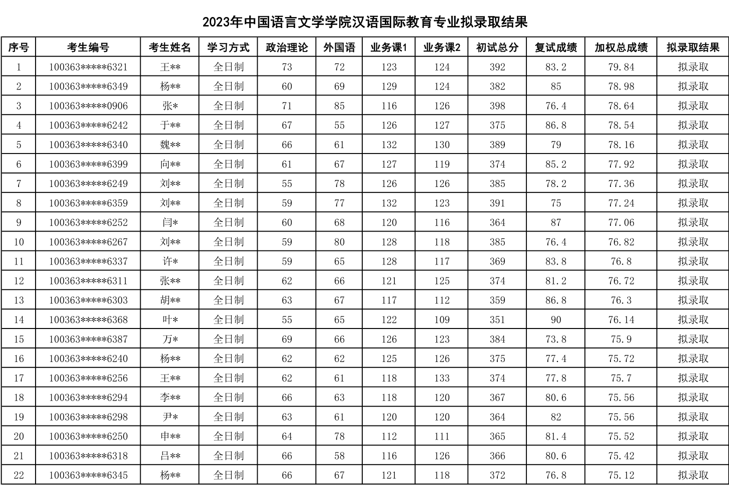 七、汉语国际教育(专业学位)专业2023年考研拟录取结果