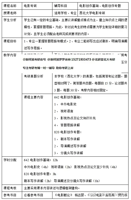 西北大学考研辅导班:2024西北大学电影专硕考研授课计划参考