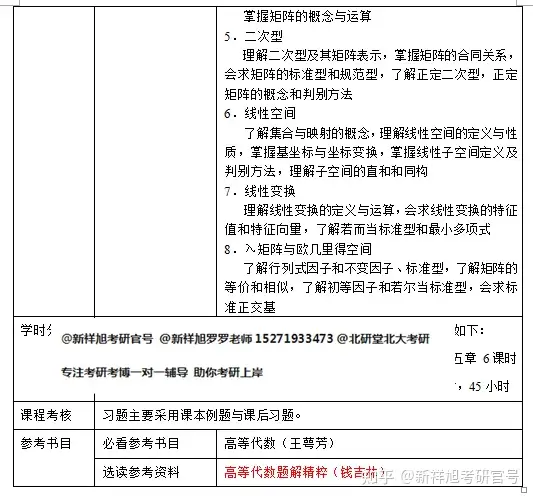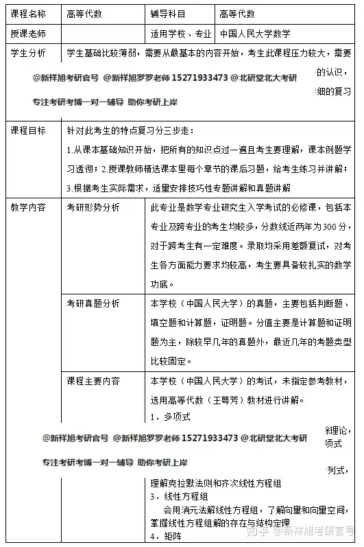 中国人民大学考研辅导:中国人民大学数学(高等代数)考研辅导授课计划参考