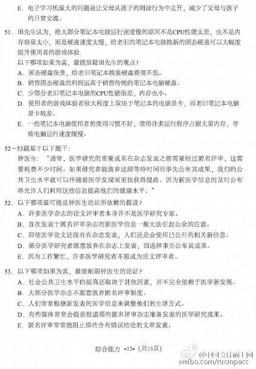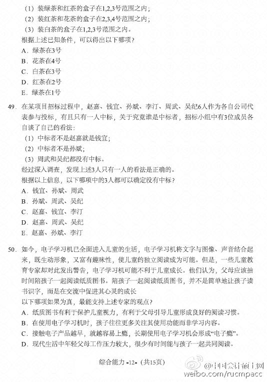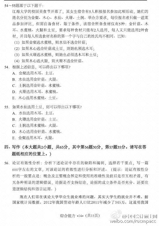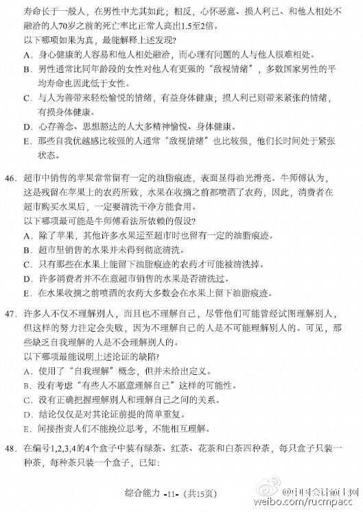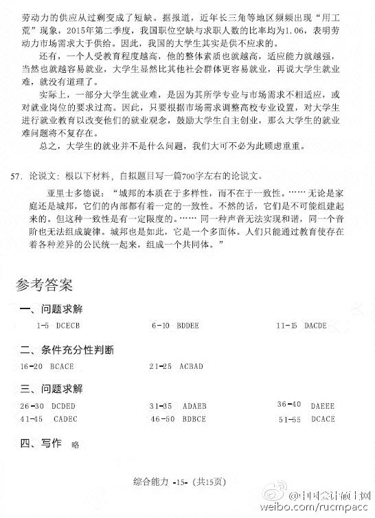 2016年199管理类联考《综合能力》真题、参考答案 (完整版)