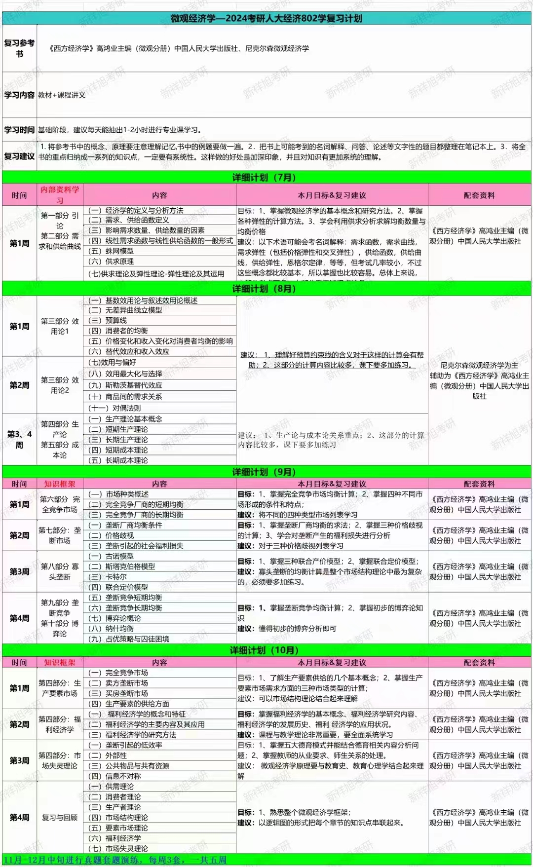 中国人民大学802经济学(微观经济学)2024年考研必看一对一辅导参考资料、考试题型、真题解析、复习规划、授课计划等汇总