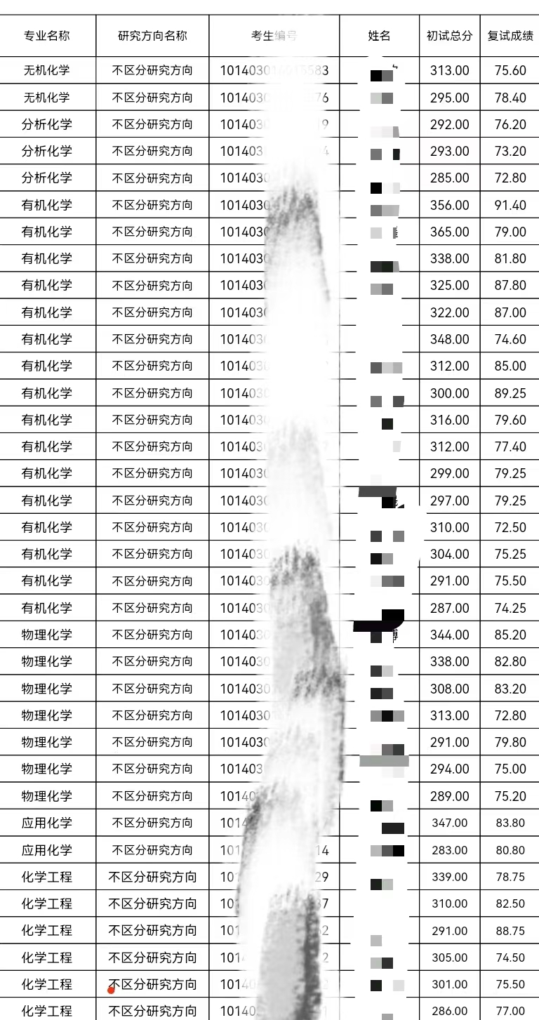 无机、物化、分析一志愿拟录取名单分析: