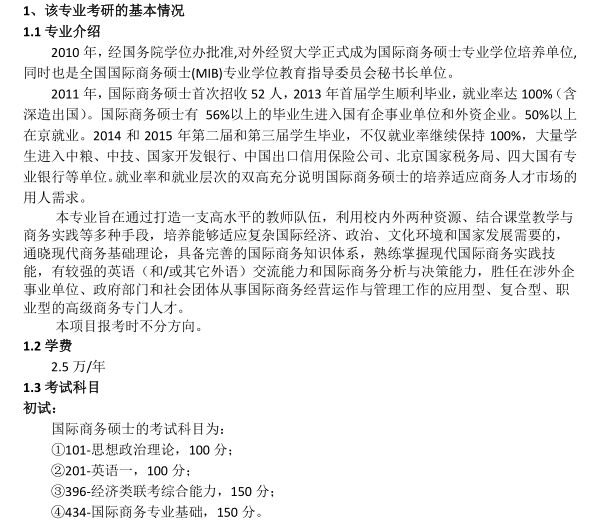 对外经济贸易国际商务硕士(MIB)2018考研专业基本情况介绍—贸大考研辅导班
