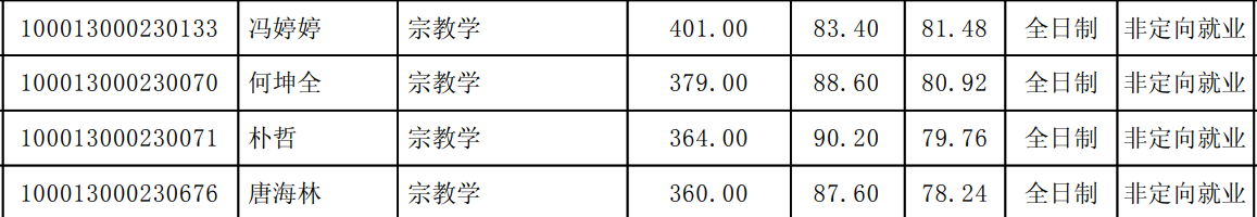 最终录取:6人(最高分375、最低分355、佛教4人、道教1人、宗教学1人)