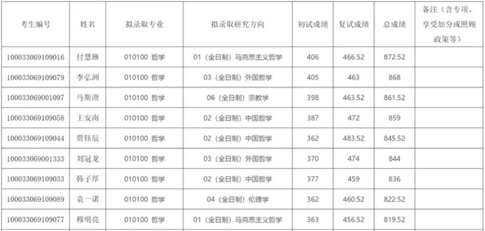 五、清华大学人文学院哲学考研复试分数线录取名单