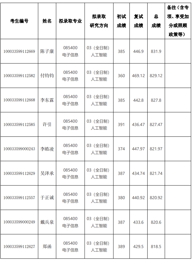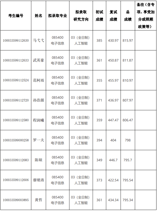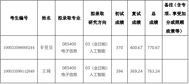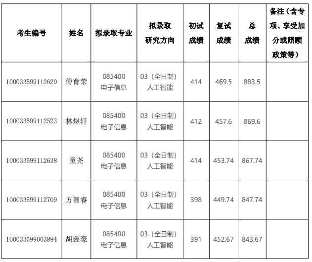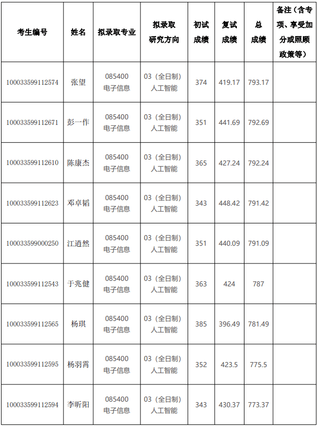 2023 年清华大学深圳国际研究生院硕士研究生电子信息(人工智能)拟录取名单公示
