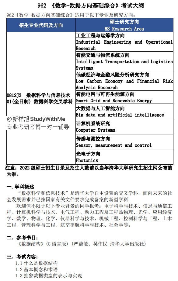《新祥旭-清华大学962数学-数据方向基础综合考研一对一复习规划》