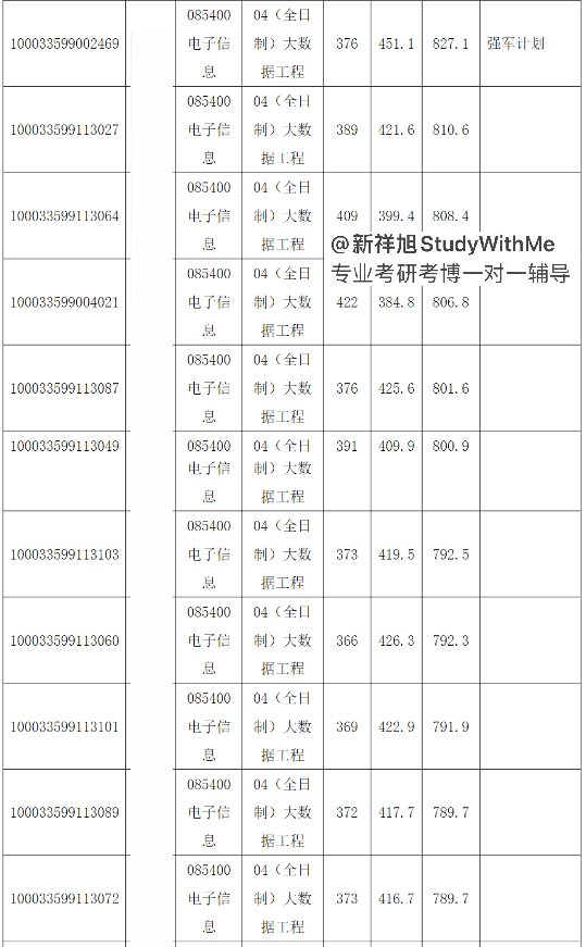 四、清华大学深研院大数据工程考研录取名单、录取人数、录取分数区间