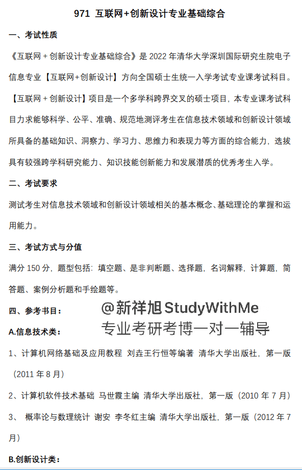 《新祥旭-清华大学971互联网+创新设计专业基础综合考研一对一复习规划》