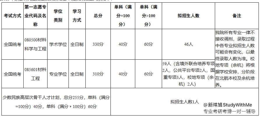 新祥旭StudyWithMe导读:本文包含23年北京航空航天大学材料科学与工程学院080500材料科学与工程(学术学位)/085601材料工程(专业学位)911材料综合考研的初试经验、参考书、分数线、招生人数、复试流程、真题题型、难度分析等干货。