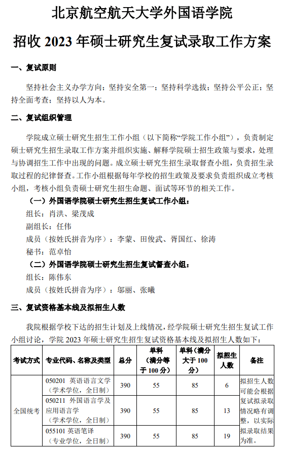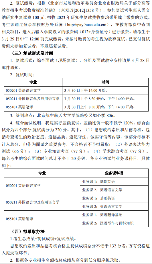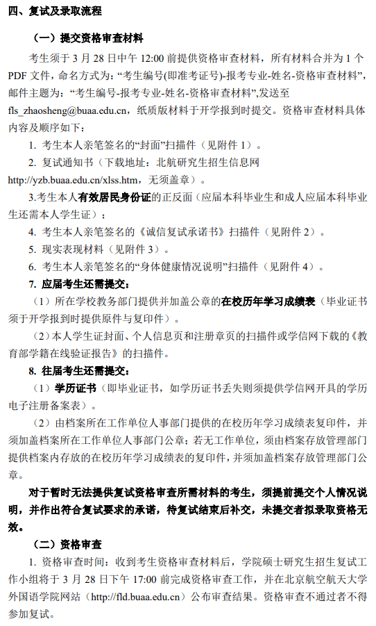 四、北京航空航天大学外国语学院考研复试流程