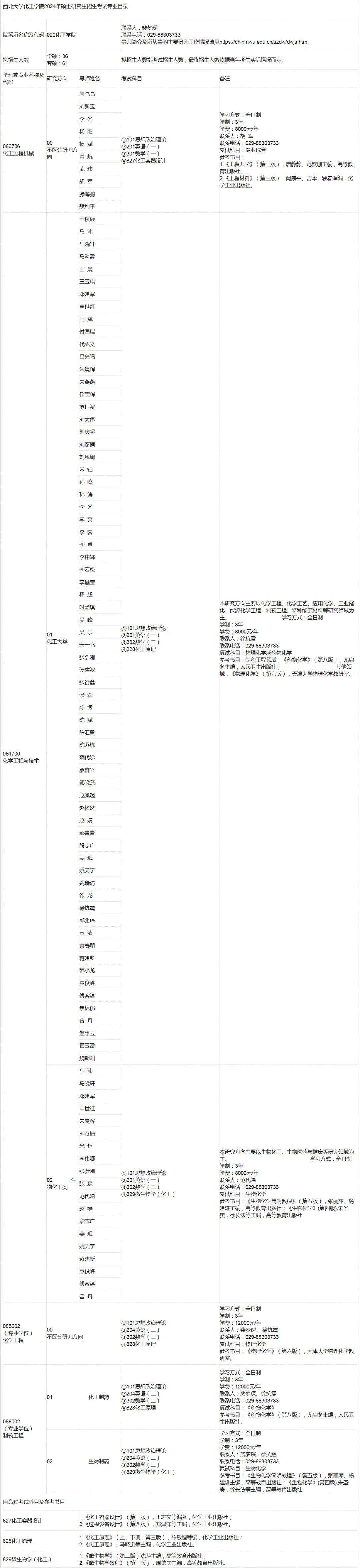 新祥旭考研:2024年西北大学化工学院硕士研究生招生目录及参考书目
