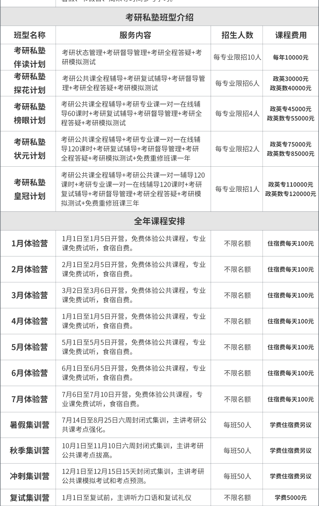二战考研学员:即将毕业或已经毕业或在职学员可以随时参与全日制封闭式学习 备考,也可以利用寒暑假、节假日、周末等时间参与学习。