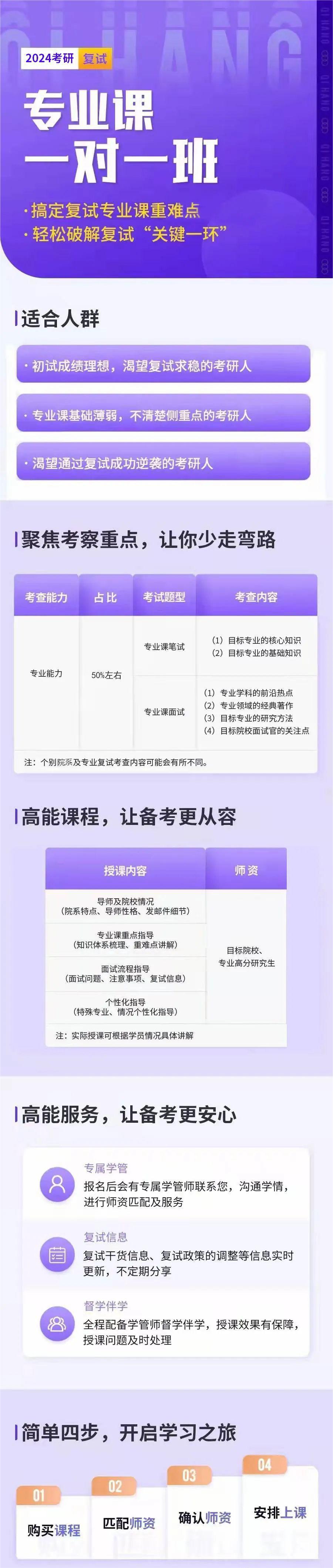 新祥旭考研,专注于考研初试、复试辅导,为广大学子提供量身定制、个性化有针对性的一对一辅导。在复试辅导方面,提供修改个人简历等材料方面的辅导、英语口语辅导、导师情况介绍、协助联系导师、面试辅导、专业知识辅导等,为广大考研学子提供复试的保驾护航。辅导内容包括但不限于以下: