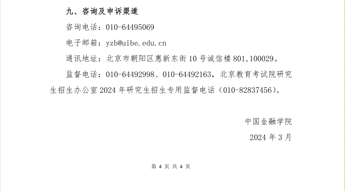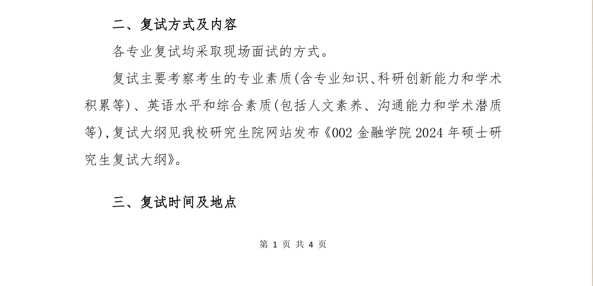 对外经济贸易大学中国金融学院2024年硕士研究生招生考试复试方案