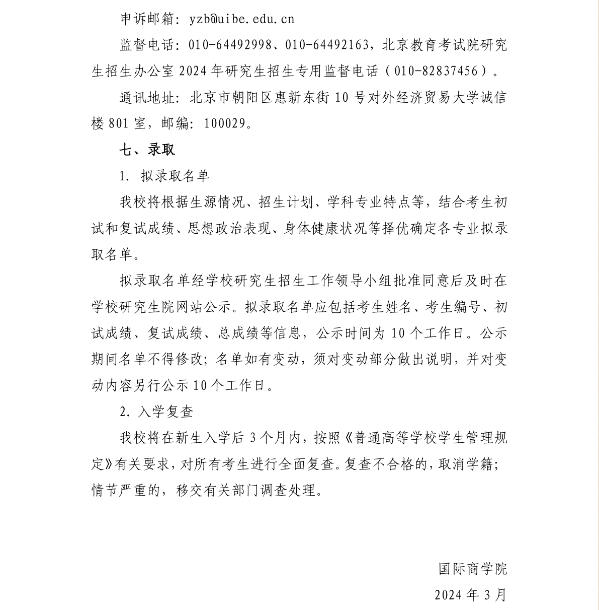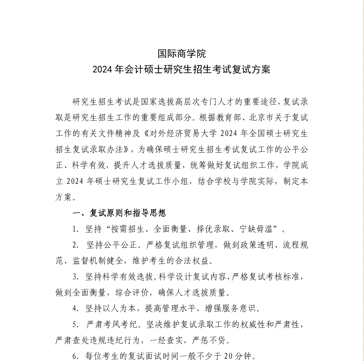 对外经济贸易大学国际商学院会计硕士(MPAcc)2024年硕士研究生招生考试复试方案