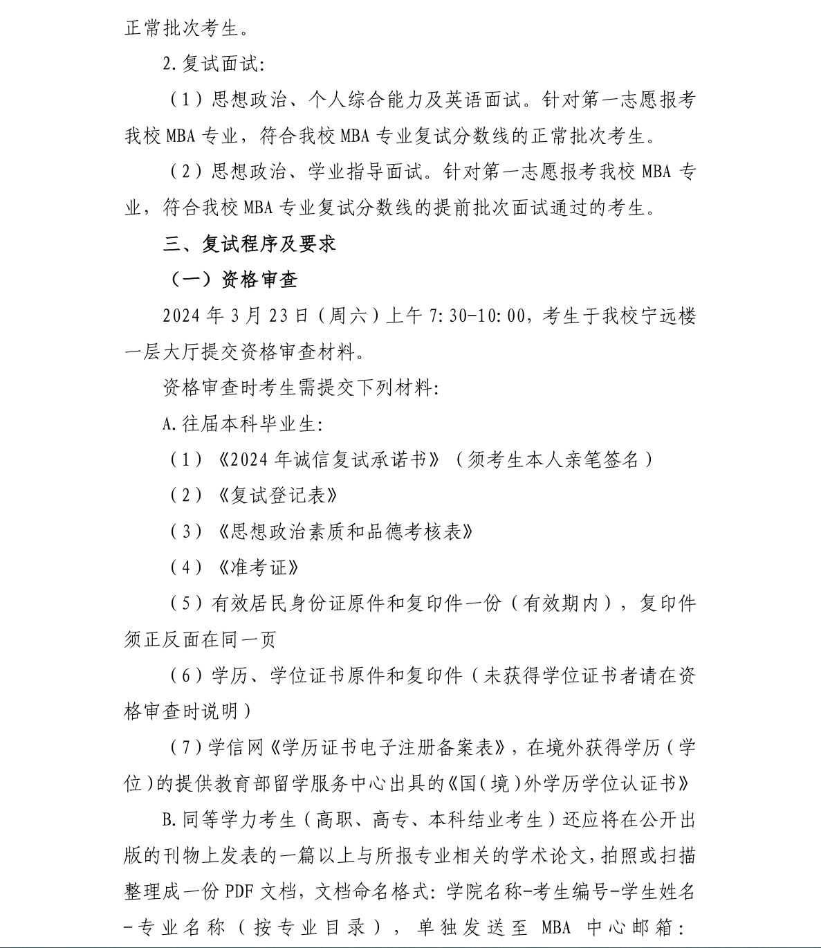 对外经济贸易大学国际商学院工商管理硕士(MBA)2024年硕士研究生招生考试复试方案