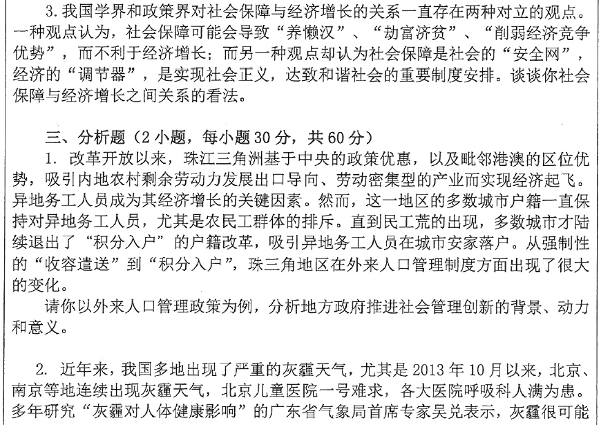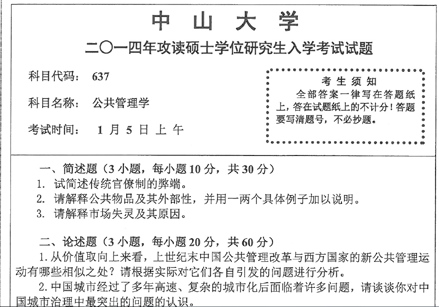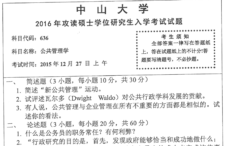中山大学公共管理专业2014-2016年考研真题