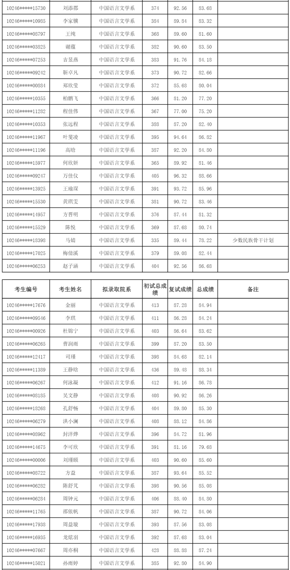 2024复旦大学中国语言文学系硕士研究生录取名单