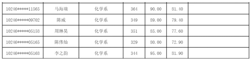 2024复旦大学化学系硕士研究生录取名单