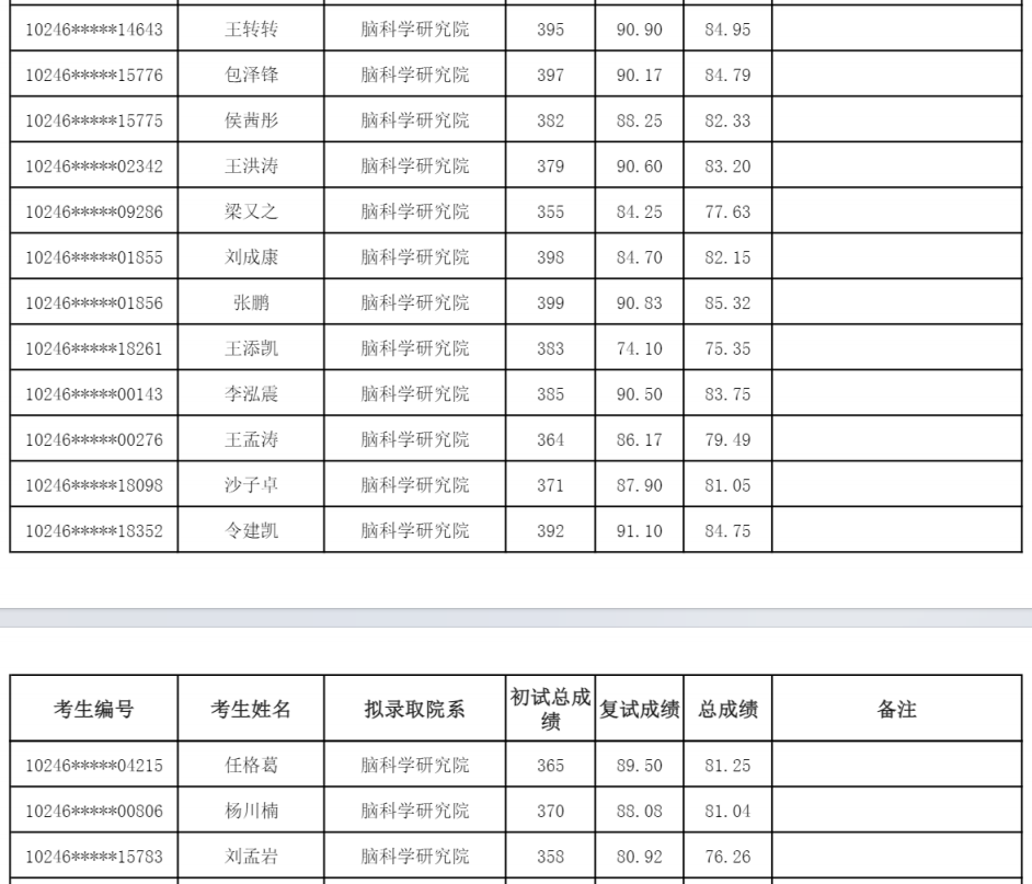 2024复旦大学脑科学转化研究院硕士研究生录取名单