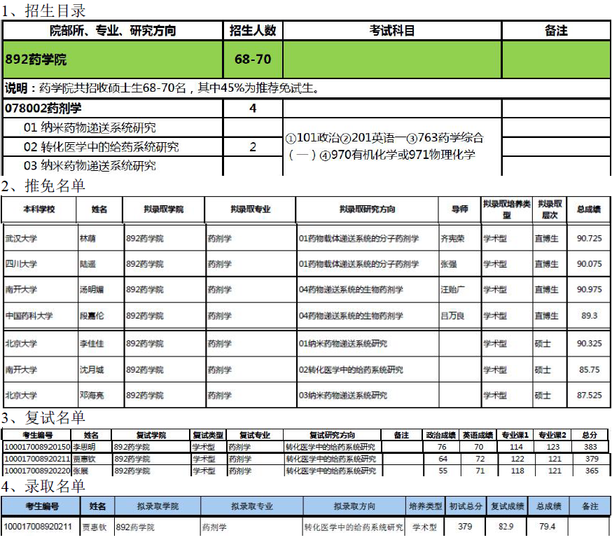 北京大学医学部078002 药剂学考研目录