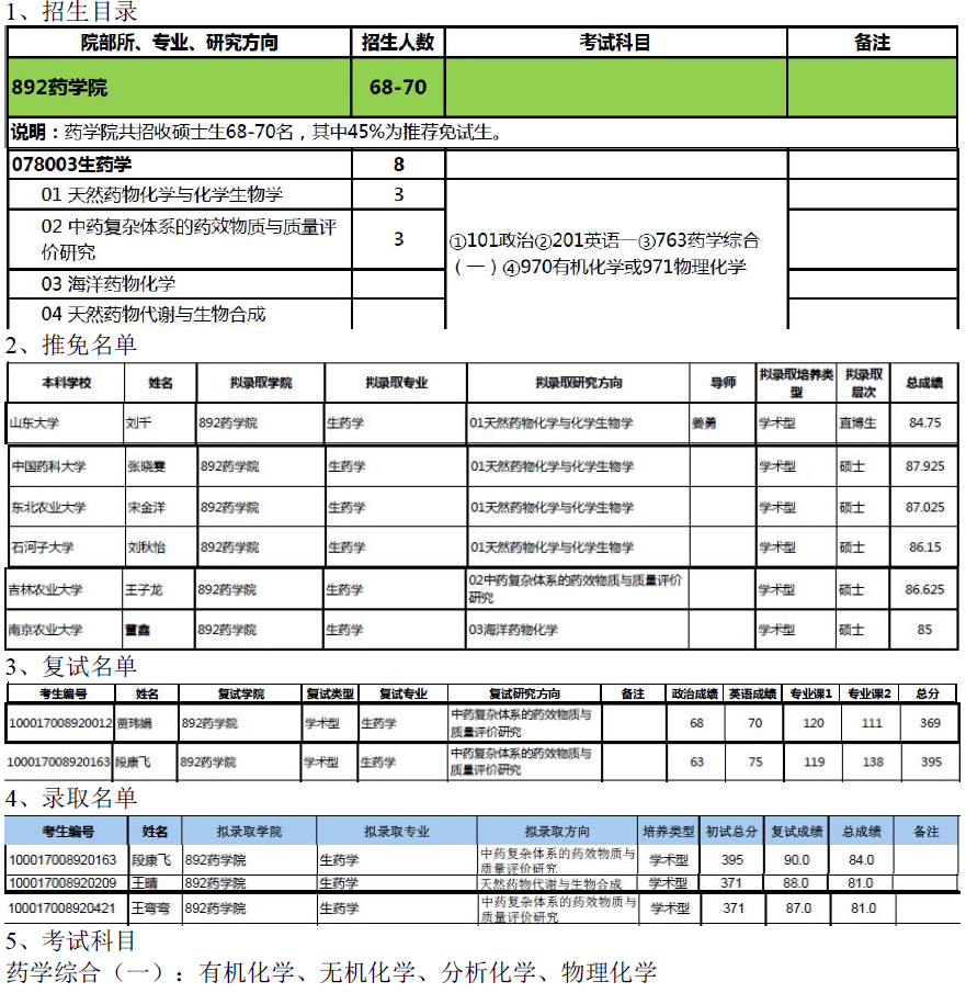 北京大学医学部078003 生药学考研目录