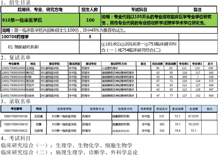 北京大学医学部100706药理学考研目录