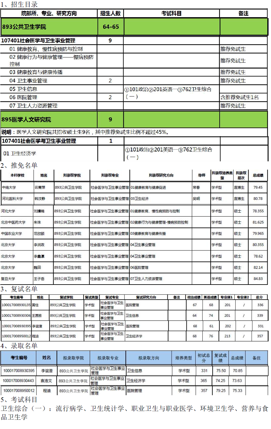 北京大学医学部107401社会医学与卫生事业管理考研目录
