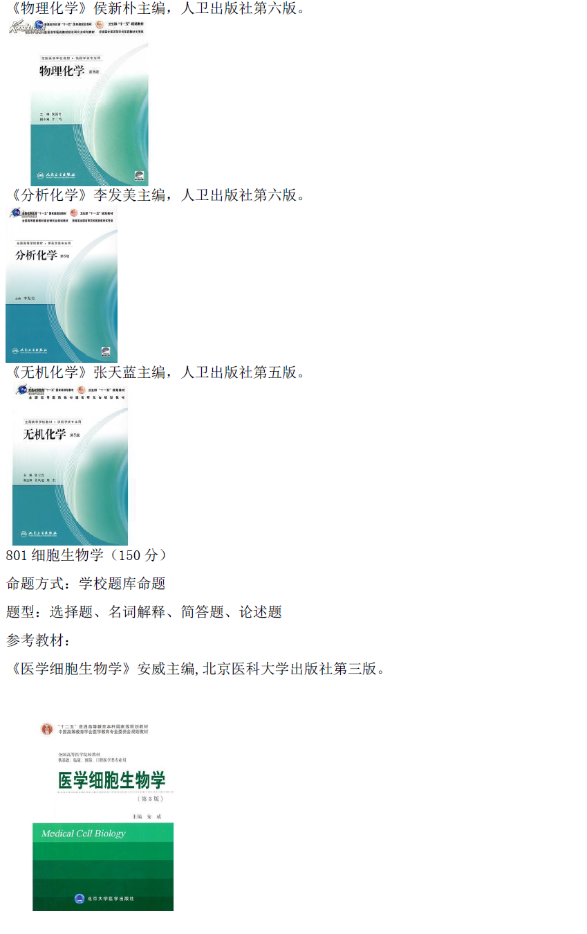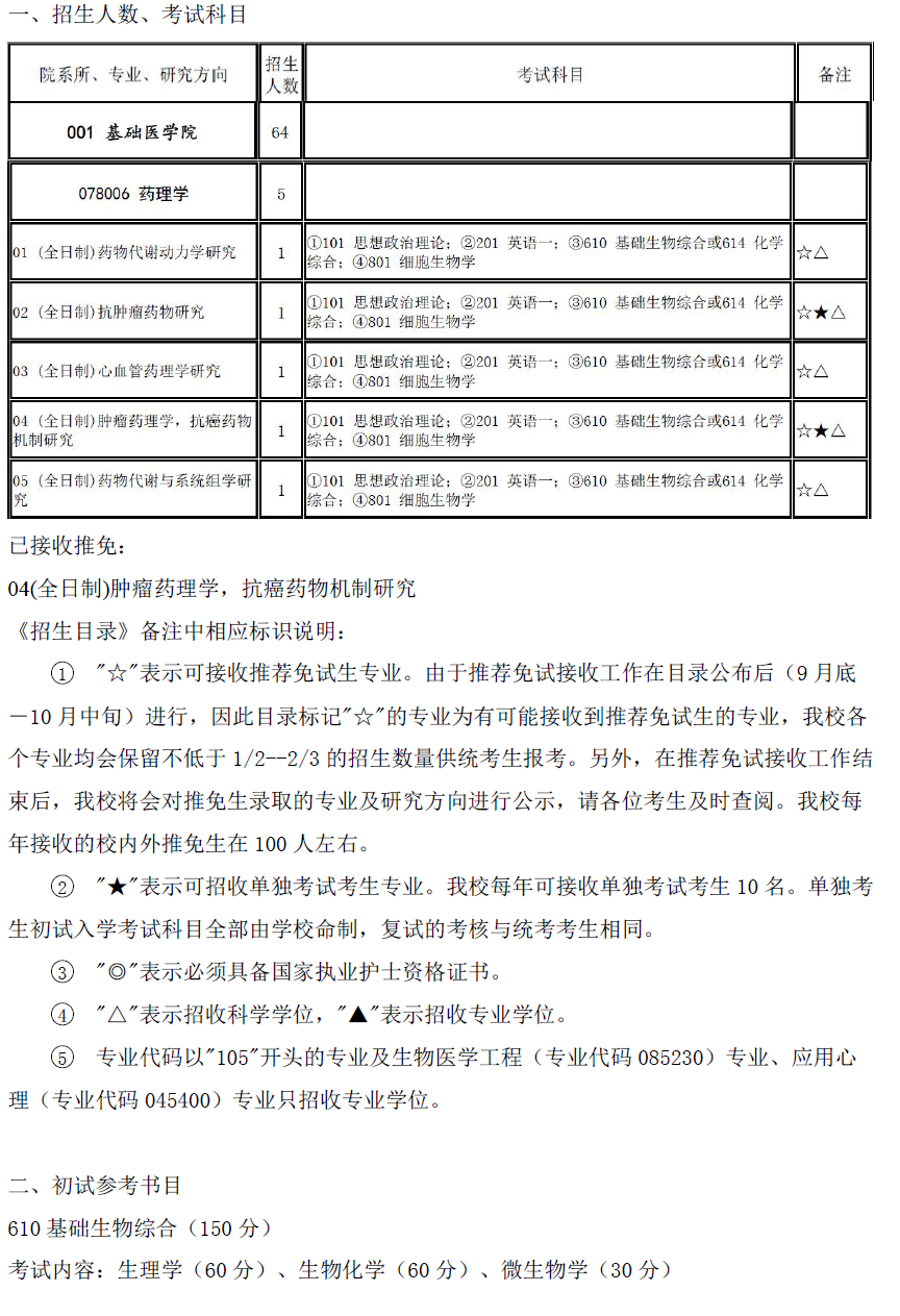 2017年首都医科大学105500药学招生目录、推免名单、参考书目
