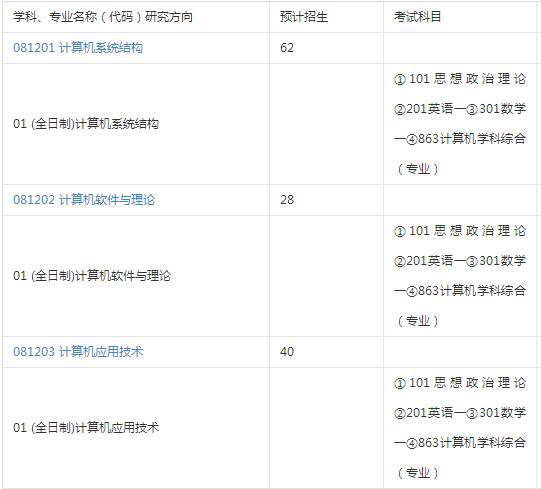 ①101思想政治理论②204英语二③302数学二④863计算机学科综合(专业)