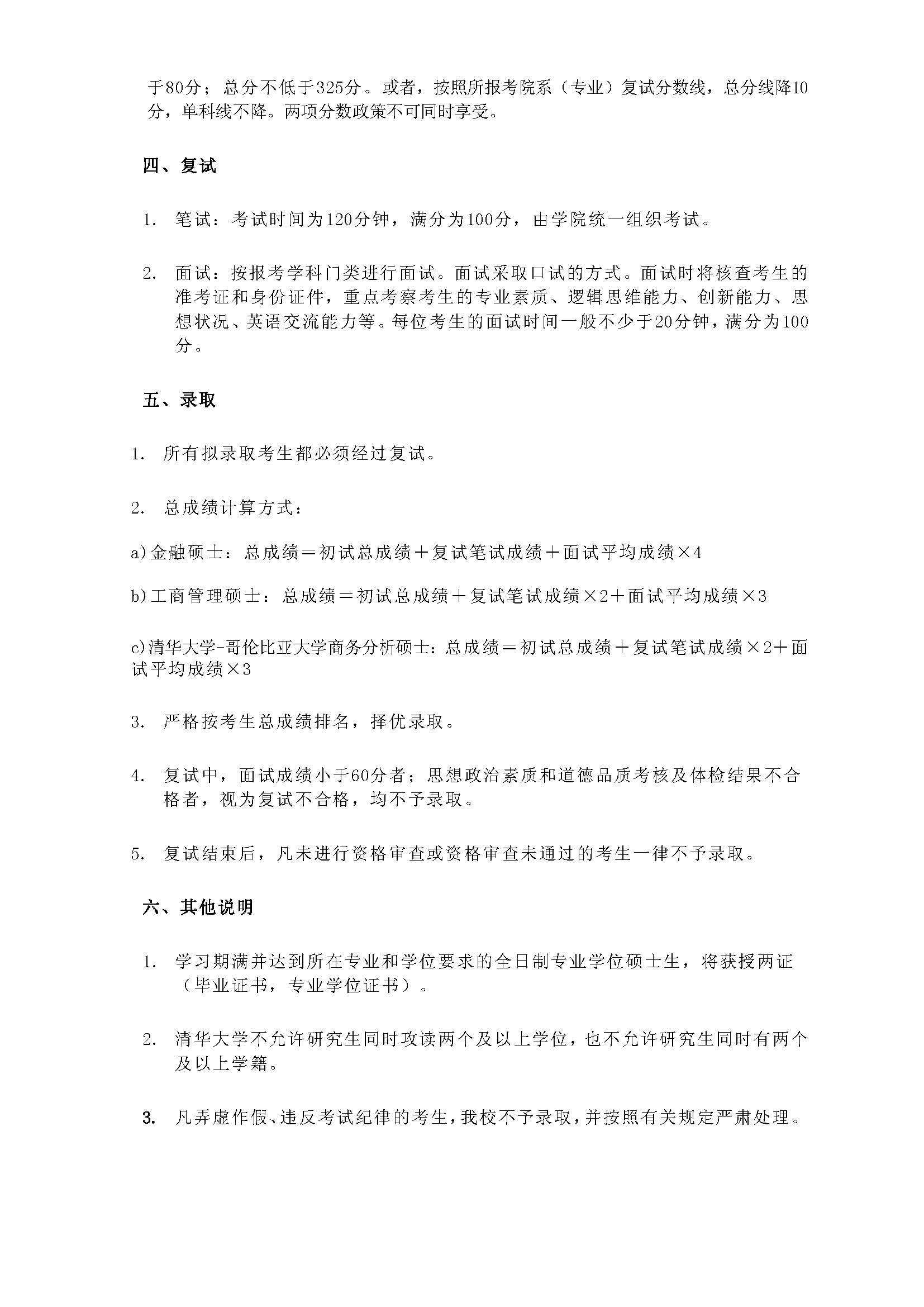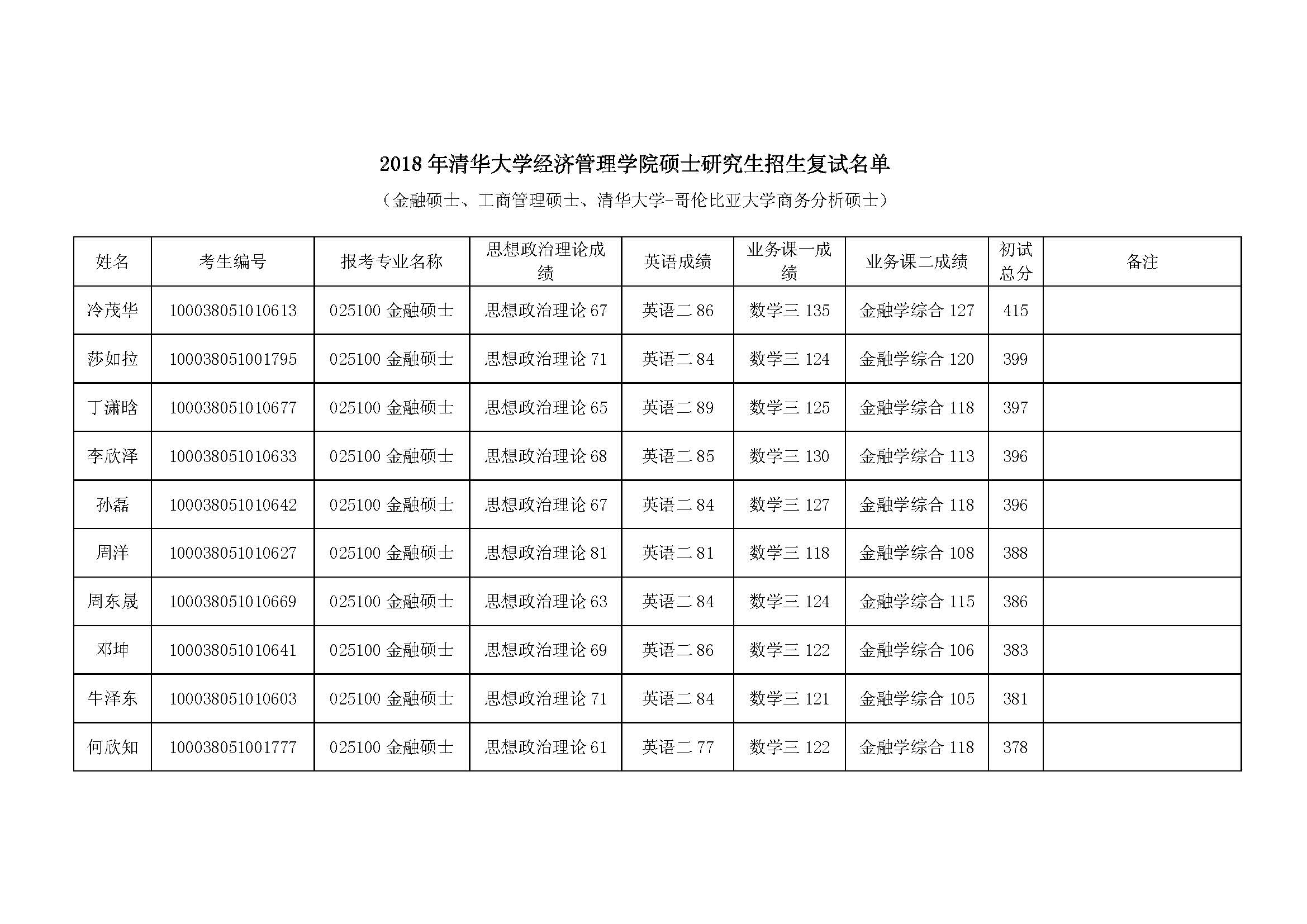 清华大学经济与管理学院2018年硕士研究生复试分数线、复试名单、安排