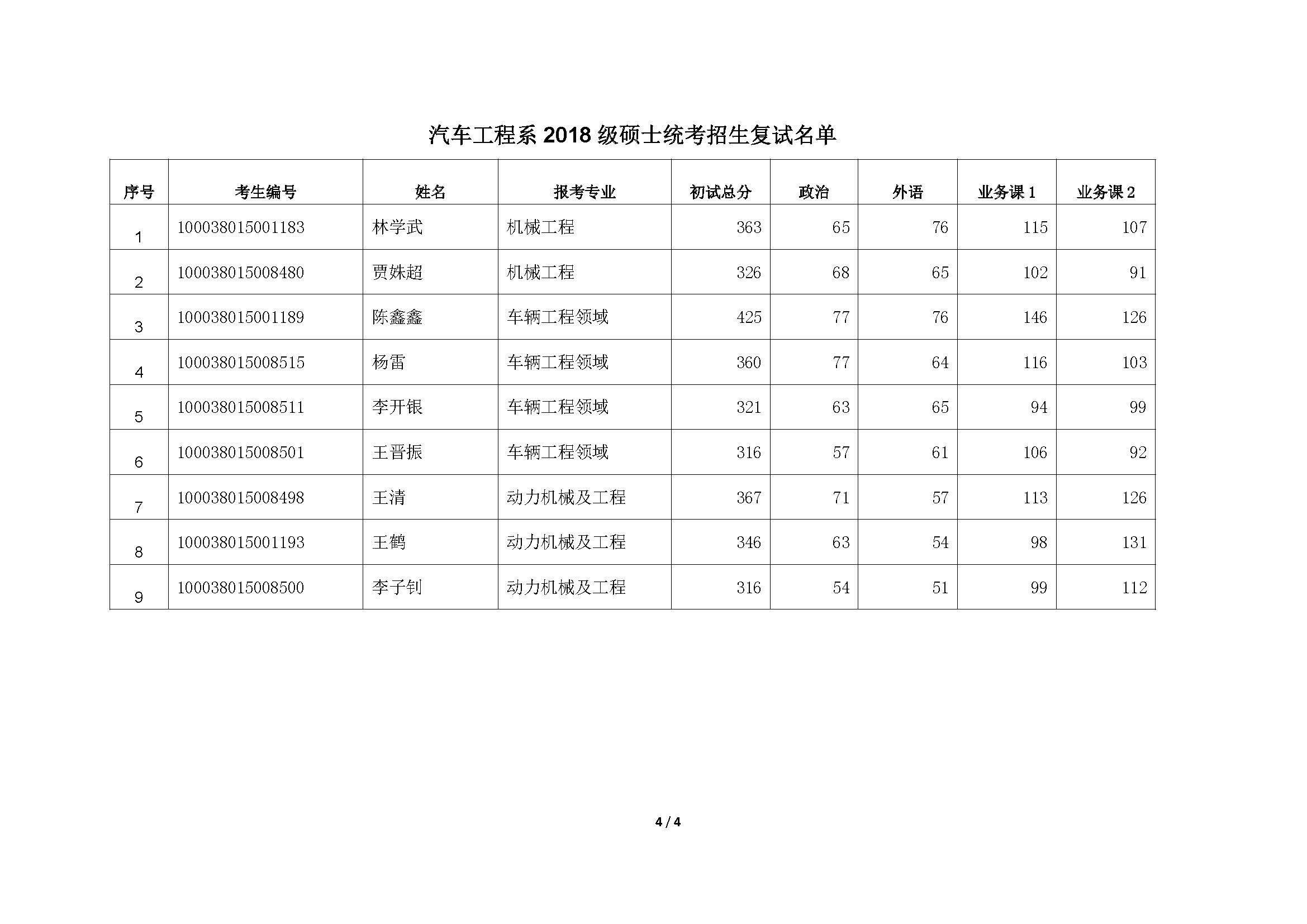 清华大学汽车工程系2018年硕士研究生复试分数线、复试名单