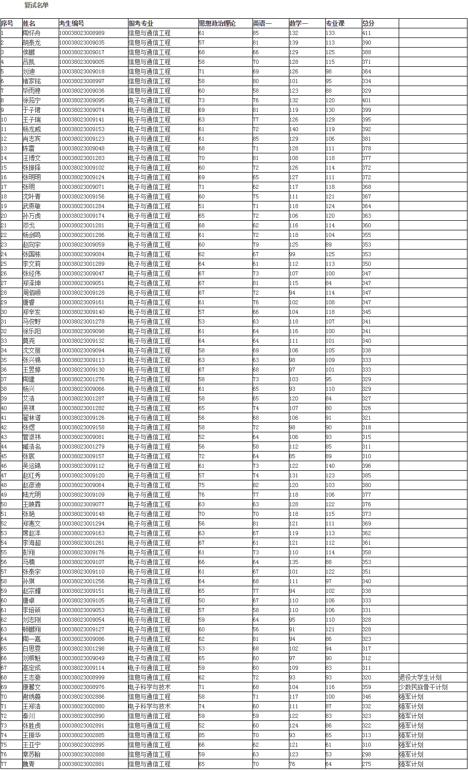 | 081000 | 退役大学生计划 | 305 | 50 | 50 | 80 | 80 | 1 | ||