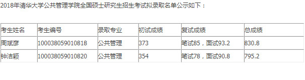 清华大学公共管理学院2018年硕士研究生拟录取名单