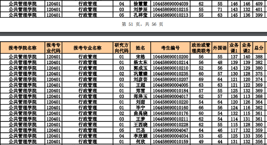 2018年行管一志愿复试名单
