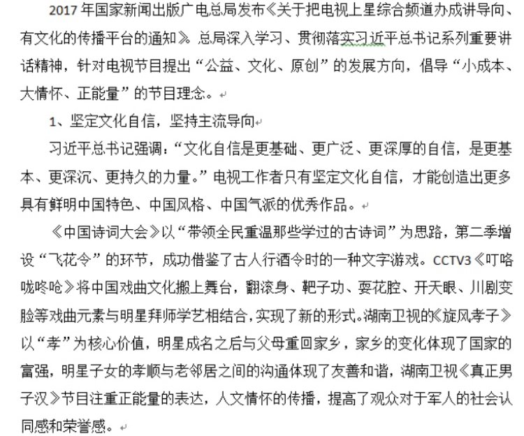 下面为了让大家对大题有一个更直观的了解,我找了一道备考期间准备的题目,选了一段给大家参考,题目是“上星综合频道如何做到讲导向、有文化”,第一段如下: