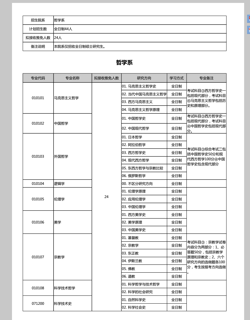 北京大学2019年哲学系(宗教学系)研究生考研专业目录