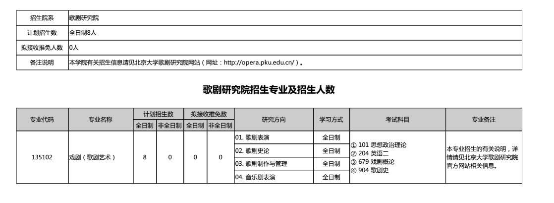 北京大学2019年歌剧研究院研究生考研专业目录