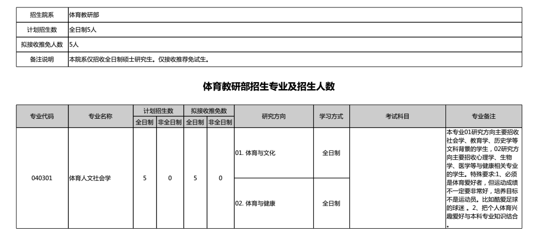 北京大学2019年体育教研部研究生考研专业目录
