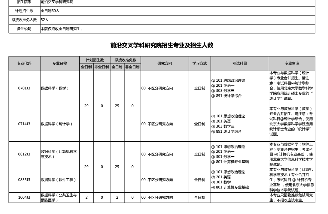 北京大学2019年前沿交叉学科研究院考研专业目录