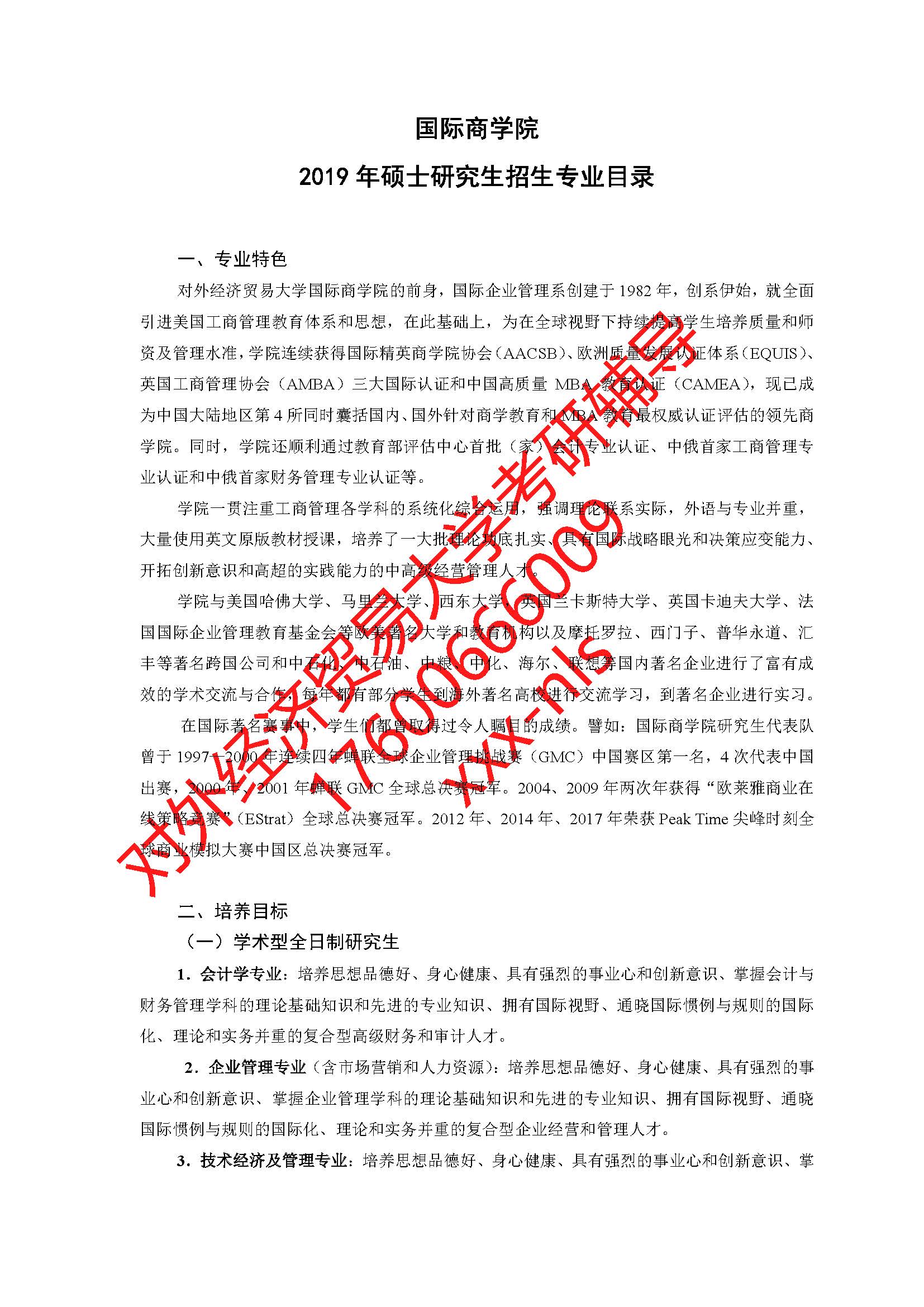 对外经济贸易大学国际商学院2019年硕士研究生招生专业目录