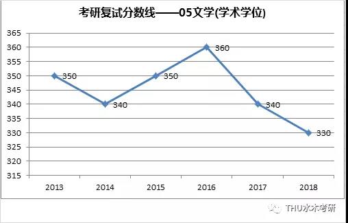 清华大学近六年文学考研复试分数线及趋势图——05文学(学术学位)