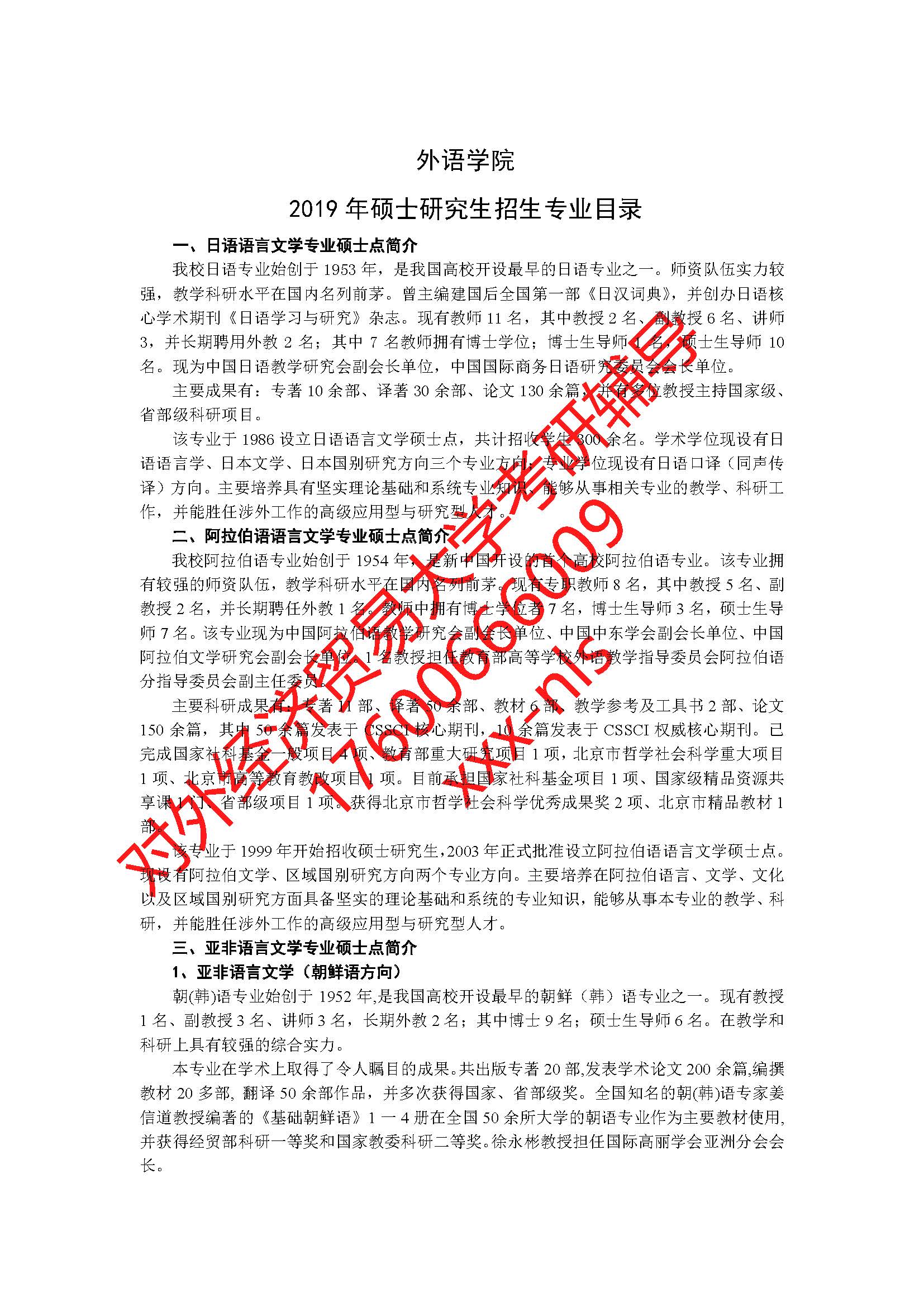 对外经济贸易大学外语学院2019年硕士研究生招生专业目录