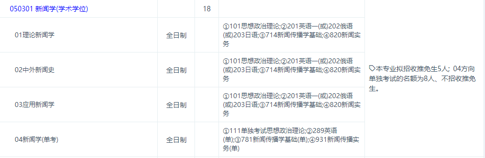 一、复旦新闻学招生目录